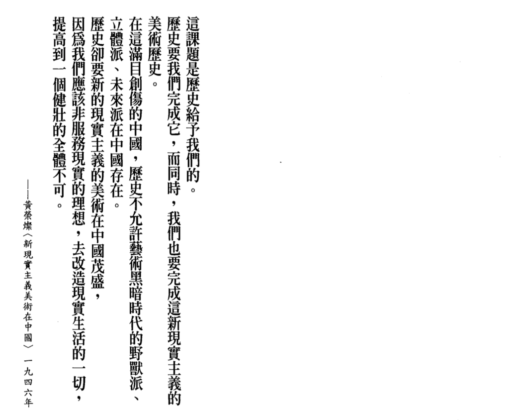 自認在「世界級水平」上從事創作的省內畫家確實在光復後努力描繪「現實」,但如黃榮燦對1946年第一屆省展(其中包含了李石樵作品)的批評所言,「從題材內容上分析,確難找描繪現實的眞理,主題的表現也難找到」因而是「沒有主題發展而失去情感組織的」作品,是迎合「現代的『時髦貨』」。[11]